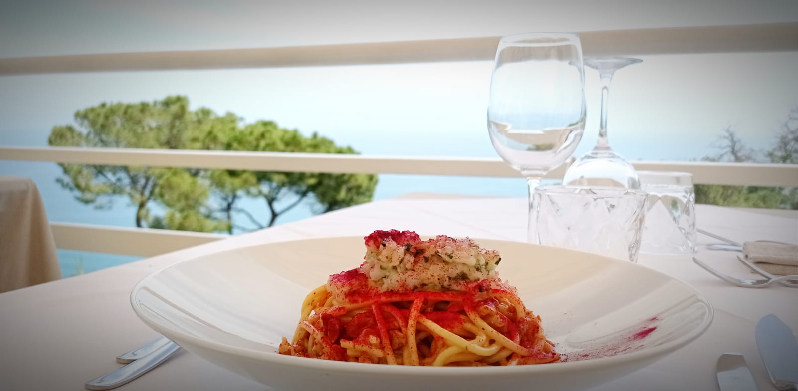 All'altezza della meravigliosa vista che si gode dalla terrazza, è doveroso che venga proposta una cucina di pesce altrettanto curata. Lo Chef Nicola Giordano ha saputo così elaborare piatti che si sposano perfettamente con l'ambiente circostante, nel rispetto della tradizione, con una cura nella ricerca della materia prima prettamente locale e di alta qualità.