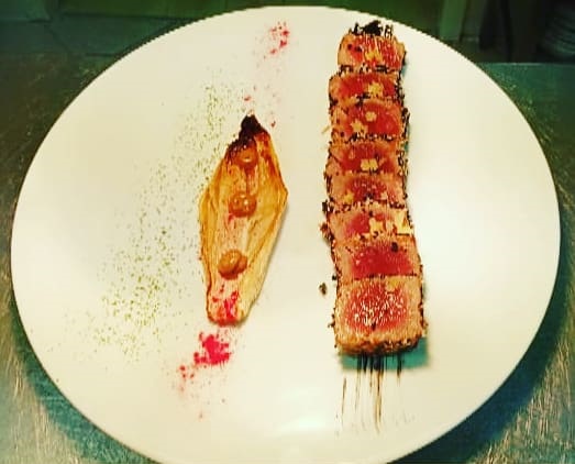 Tataky di tonno con zenzero candito e indivia brasata